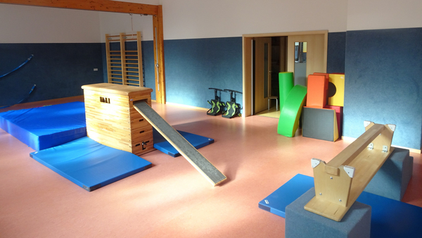 Turnhalle - Unsere Turnhalle, die von allen Gruppen genutzt wird, bietet viel Platz für Bewegung, Spiel und Sport. So können die Kinder ihrem natürlichen Bewegungsdran nachgehen.